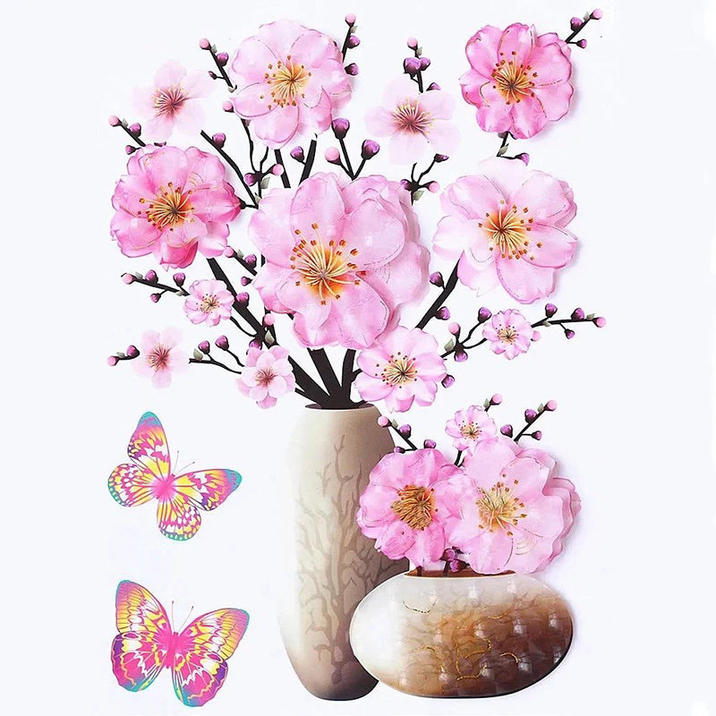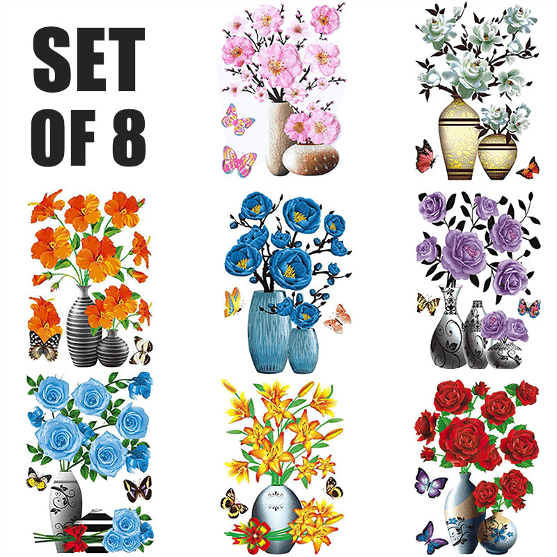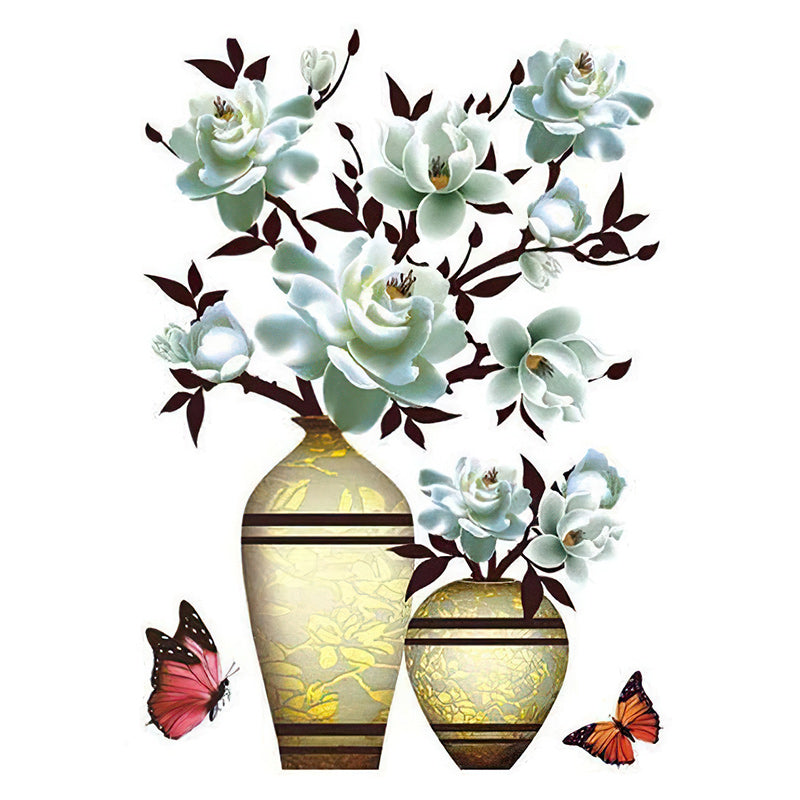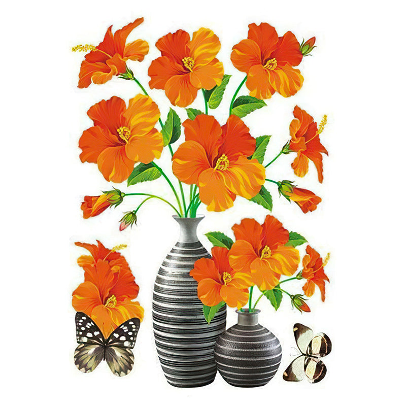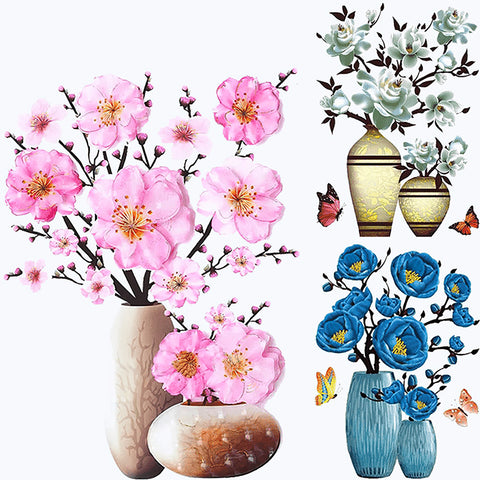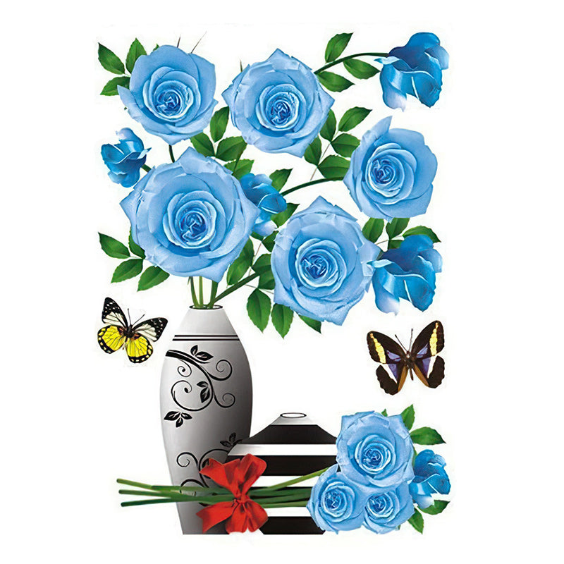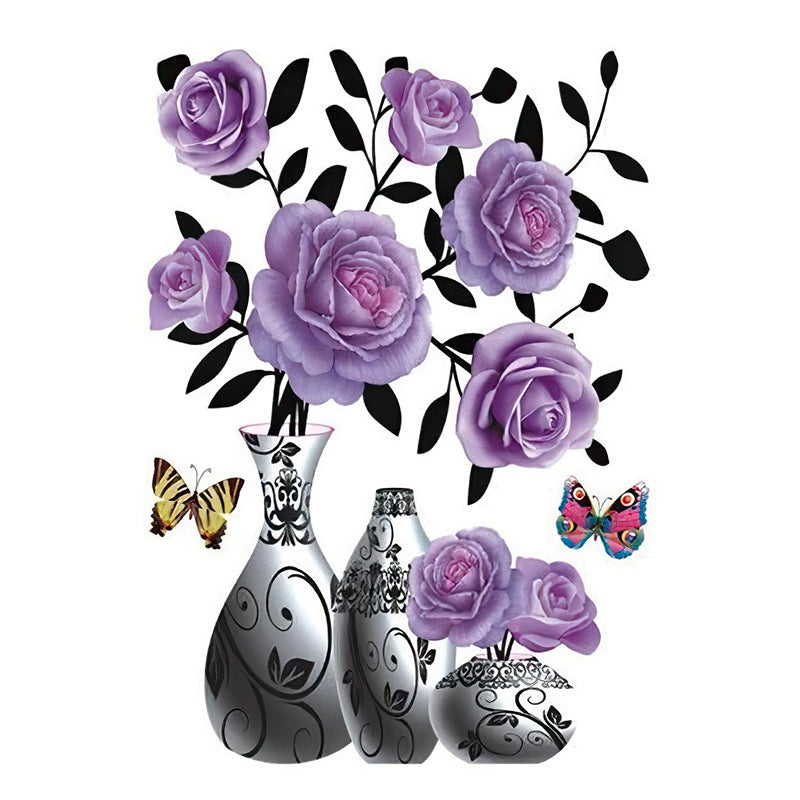 3D Stereo Rose Flower Vase Wall Stickers For Living Room Bedroom TV Background Home Decor Waterproof Self-adhesive Wall Decals.