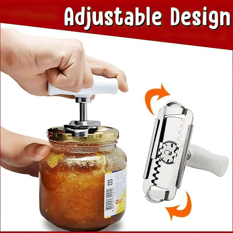 Dette værktøj åbner dine krukker ved et simpelt vrid med justerbar åbning - Juster til at passe til de fleste krukker!