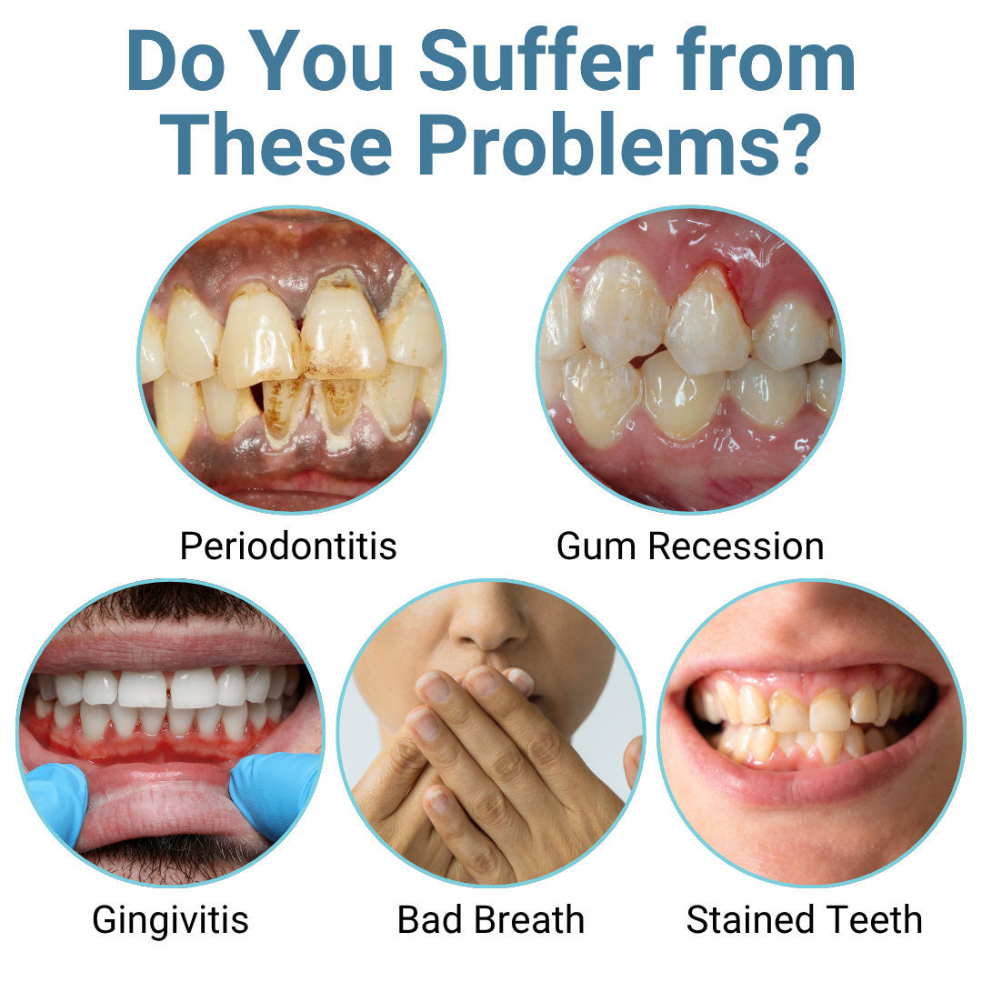 “Il mio dentista ha diagnosticato tasche parodontali di 4 mm. Dopo aver utilizzato il kit di riparazione da 3 pezzi, le tasche si sono ridotte e le mie gengive si sono visibilmente sollevate.” – Anna J.