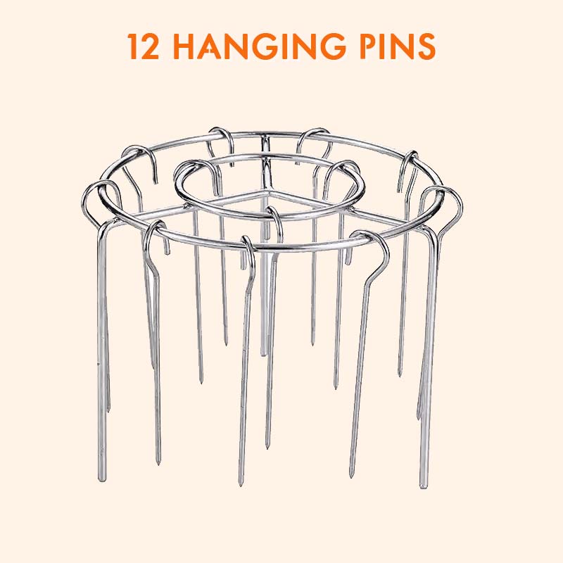 Det hængende design gør det muligt for varm luft at cirkulere jævnt rundt om hvert spyd - ingen undertilberedning, ingen forbrænding! Nyd en sprød yderside og en saftig inderside! 🤤