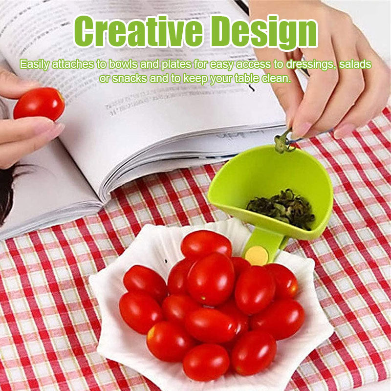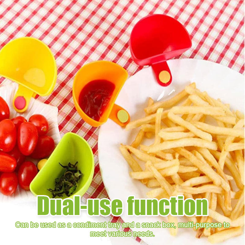 🌱 Kreativt design: Det unikke clip-on-design fastgøres nemt til skåle og tallerkener, hvilket gør det nemt at medbringe krydderier, salater eller snacks og holde bordet rent. 💐 Dobbelt funktion: Den kan bruges som krydderitallerken og snackboks og kan bruges til flere formål for at opfylde forskellige behov.