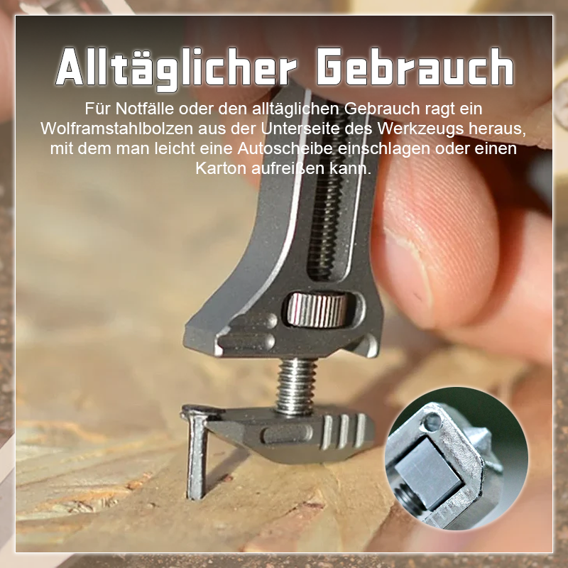 Til nødstilfælde eller daglig brug stikker tungsten stålspidser ud fra bunden af værktøjet, hvilket gør det nemt at knuse en bilrude eller rive en kasse op. Med vores multiværktøj ved din side er du altid forberedt på det uventede.
