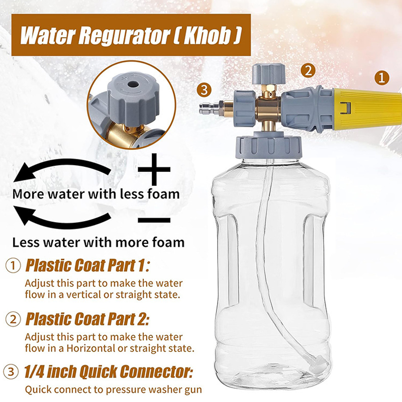 STRUTTURA RESISTENTE – Progettato con un nucleo in ottone massiccio, componenti in acciaio inox e una bottiglia in PET resistente. Questo cannone schiumogeno è costruito per resistere alla corrosione e alle alte pressioni, garantendo prestazioni affidabili e durature stagione dopo stagione.