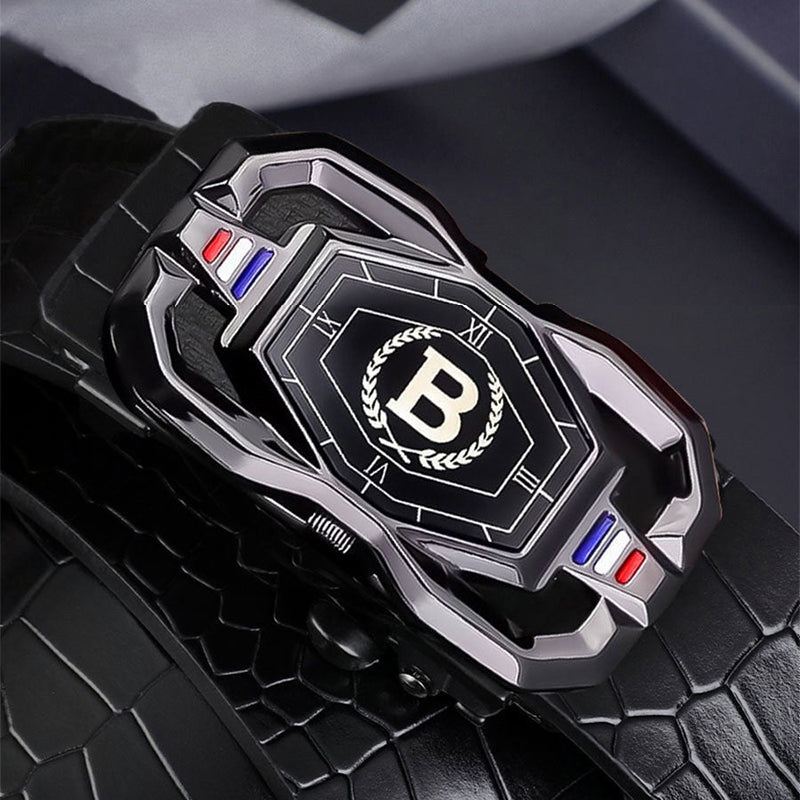 🐊Cintura in pelle per uomini con elegante motivo a coccodrillo, con fibbia automatica e realizzata in pelle bovina.