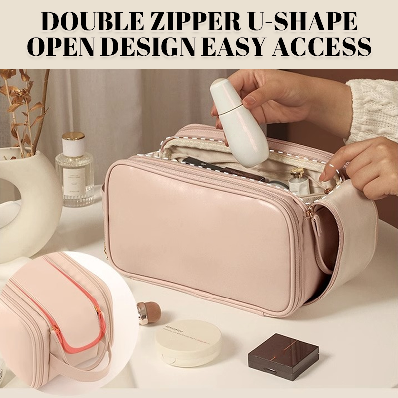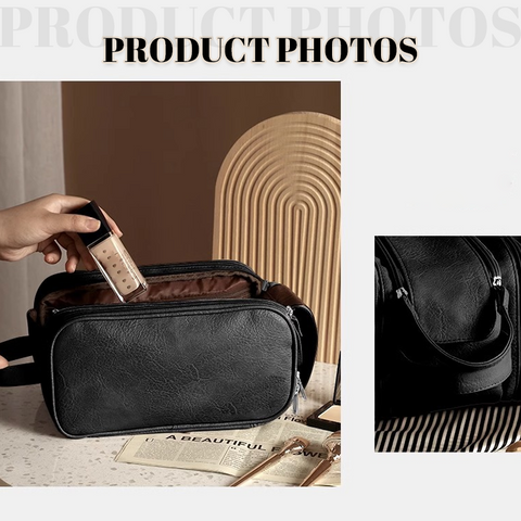 🌸 Hold styr på dine skønhedsprodukter, og rejs med stil med vores multifunktionelle kosmetiktaske i læder til kvinder. Denne elegante og alsidige taske er designet til at opfylde alle dine behov for opbevaring af kosmetik og toiletartikler, uanset om du er på jet-set eller bare på farten.