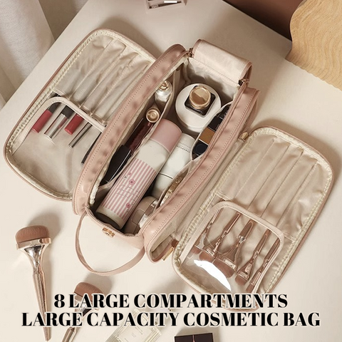 💼 Multifunktionelt design: Med flere rum, lommer og justerbare skillevægge tilpasser denne taske sig til dine unikke behov og giver plads til alt fra læbestift til børster og endda små hudplejeprodukter.